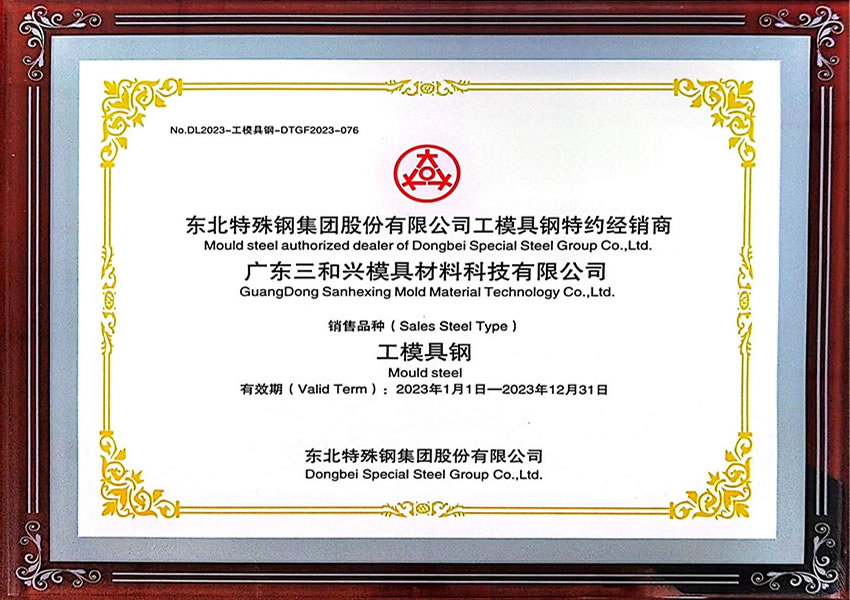 東北特鋼特約經(jīng)銷商證書(shū)-廣東2023